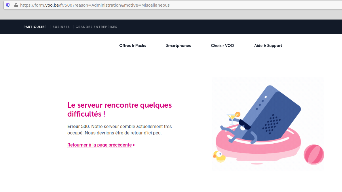 Pourriez-vous essayer, en plus du conseil donné par Xena, de ne pas vous identifier avec myVOO et de valider le formulaire ensuite en y renseignant votre numéro de client ?